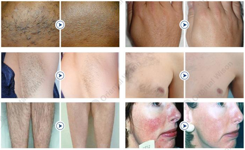 सभी त्वचा और सभी रंग के बालों को हटाने के लिए मेलेनिन तरंग दैर्ध्य का सबसे अच्छा अवशोषण शिखर।
